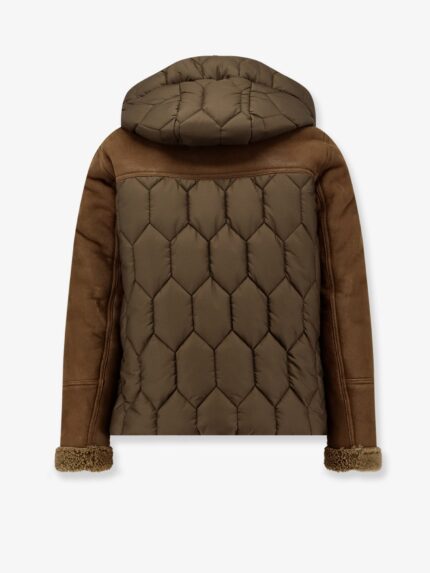 Padded nylon down jacket with leather inserts