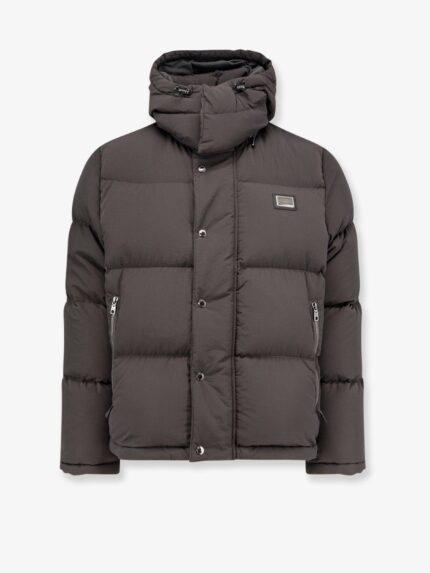 Nylon jacket with metal logo patch on the front