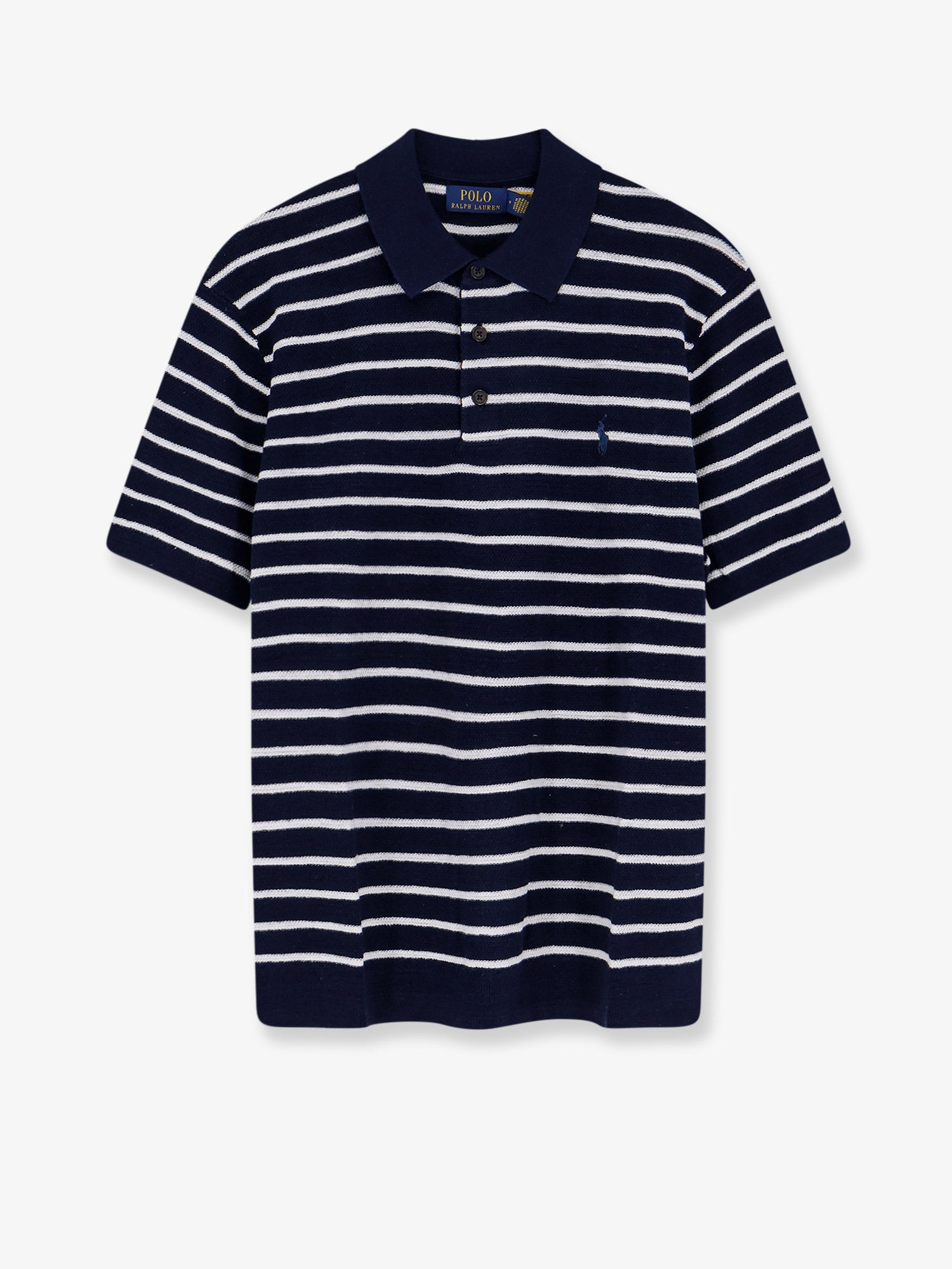 Cotton and linen polo shirt with striped pattern