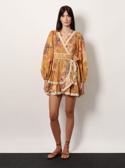 Frill cotton short dress with floral print