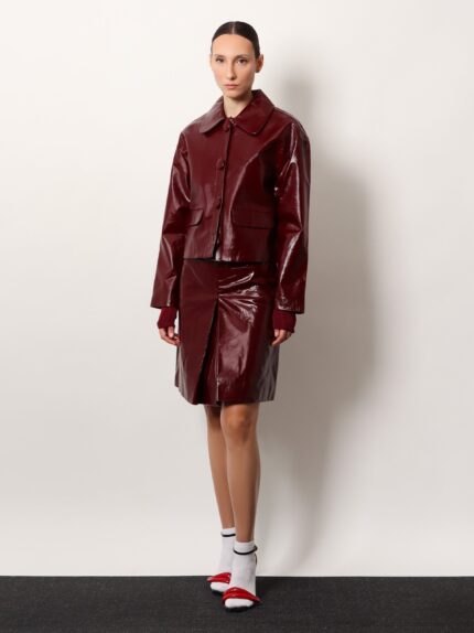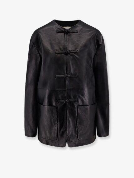 Mandarin closure leather jacket