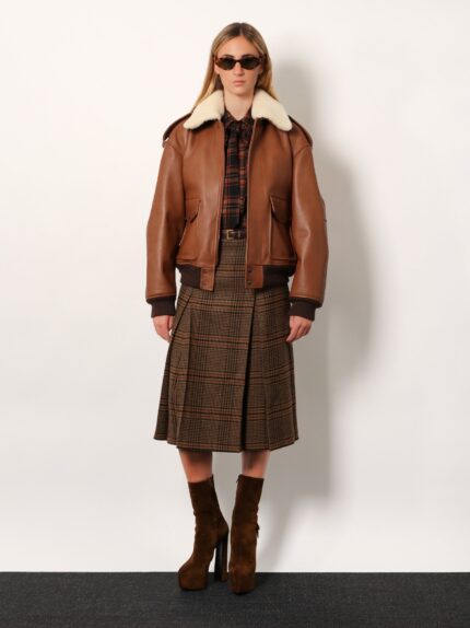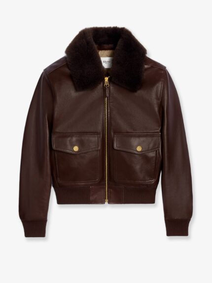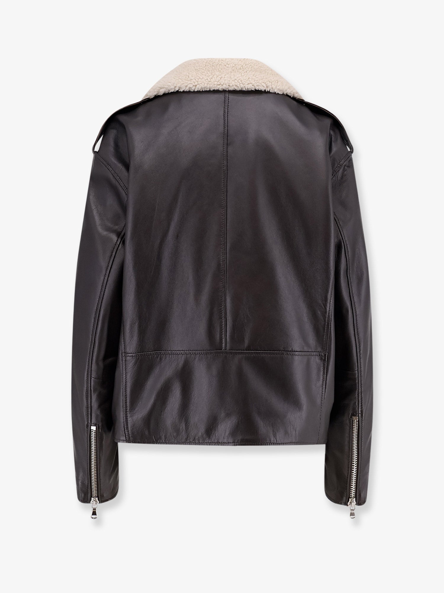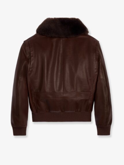 Leather bomber jacket with shearling collar