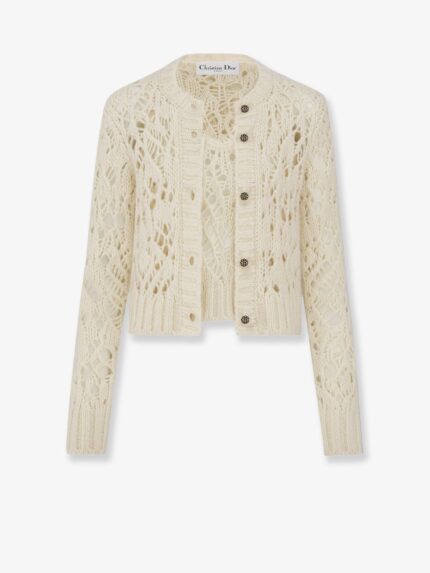 Perforated wool blend cardigan with sequins