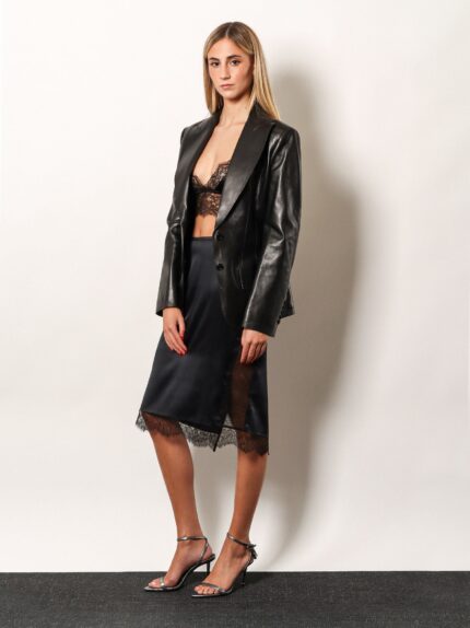 Shiny leather and neoprene skirt