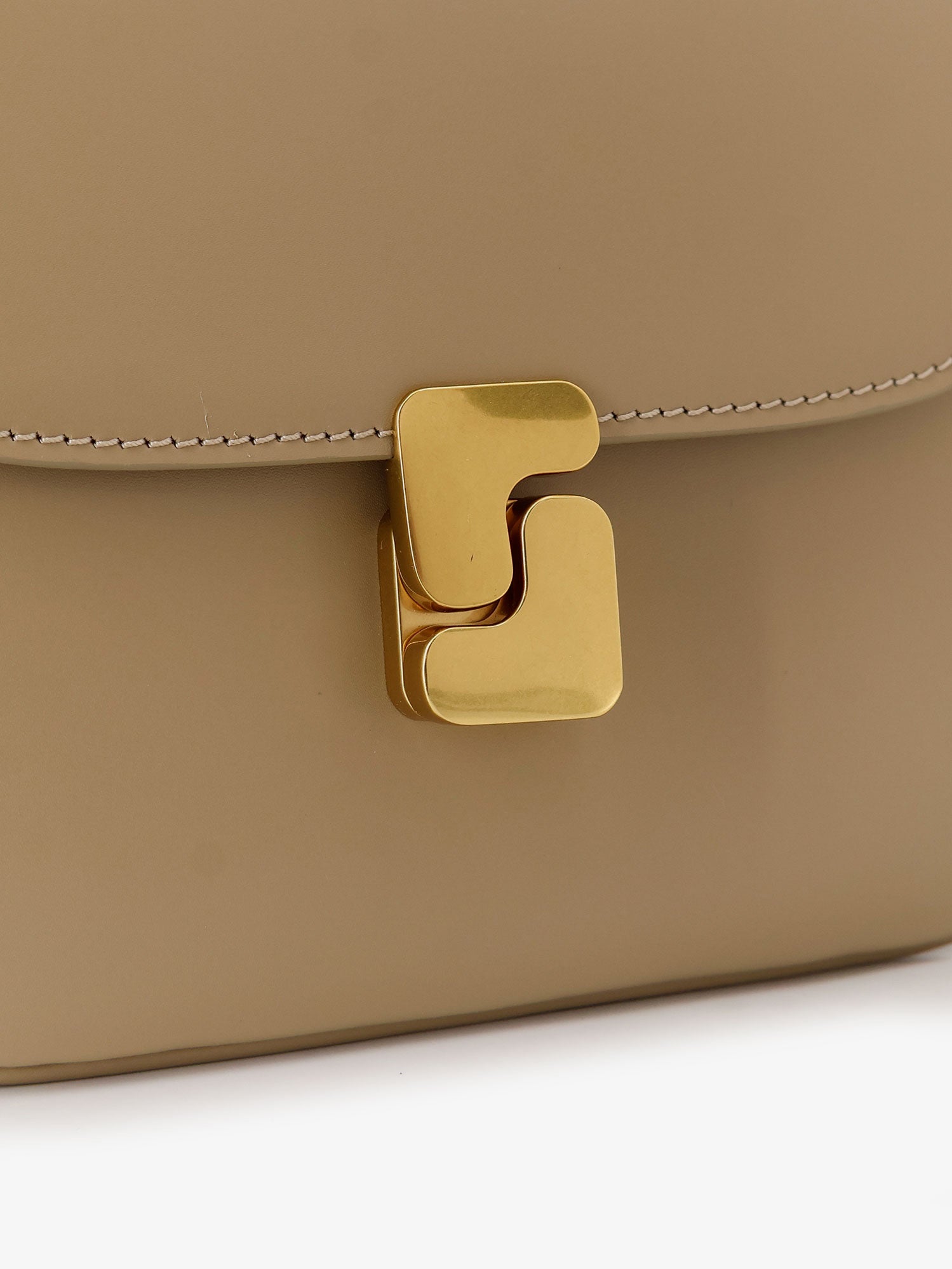 Flap closure with metal monogram