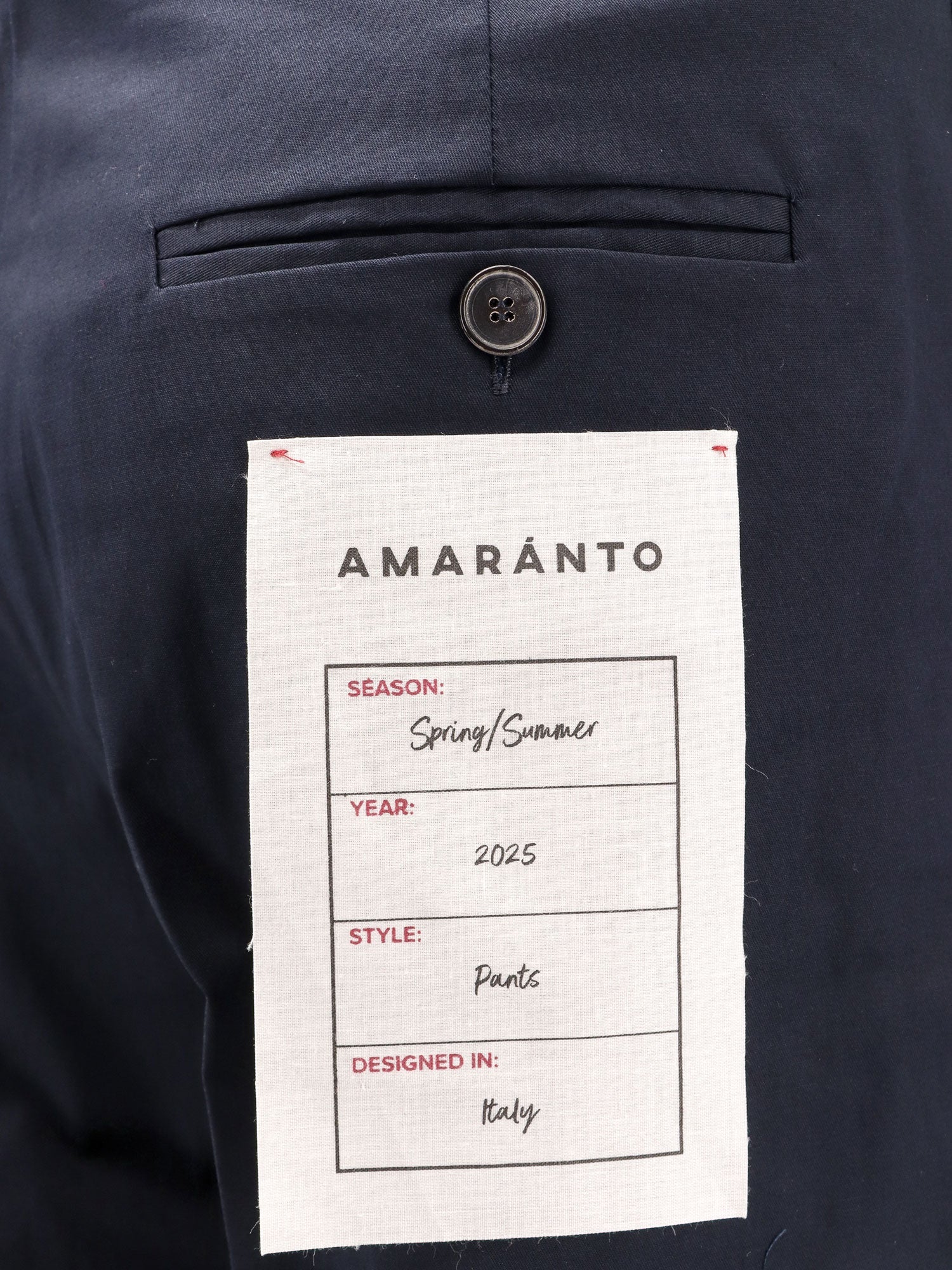 SKU: B6D0025_NAVY – Closure with metal hook and zip slant pockets on the front welt pockets with buttons on the back made in italy 100% cotton