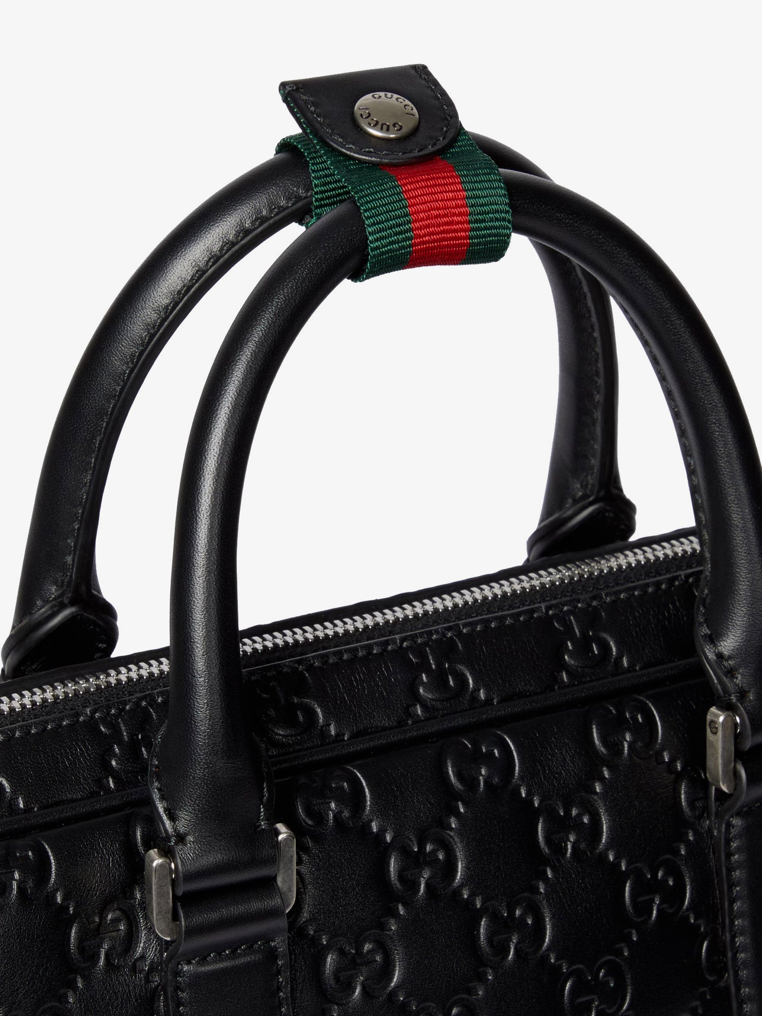 Double leather handle with Web ribbon detail