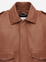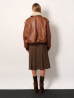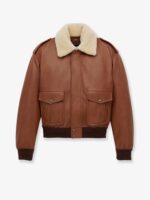Leather bomber jacket with shearling collar
