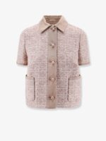 Macrocannage short sleeve cotton blend tweed blazer