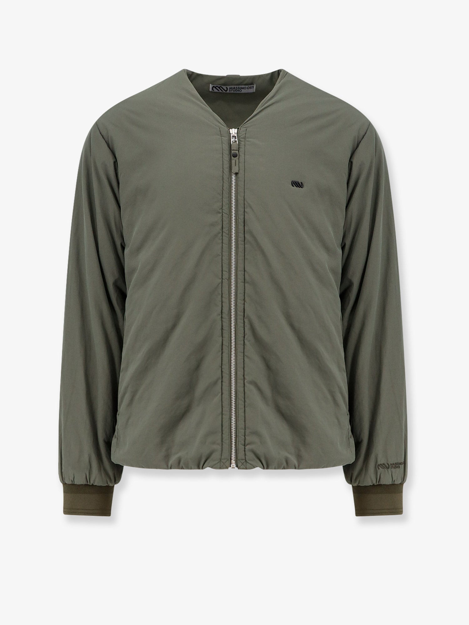 Nylon jacket with metal logo patch on the front