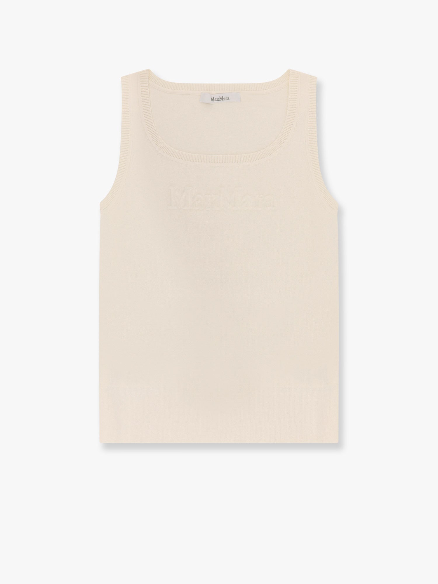 SKU: 2511361049650_001 – Sleeveless with thin shoulder straps rounded neckline embossed logo on the front ribbed profiles 65% viscose 35% polyamide
