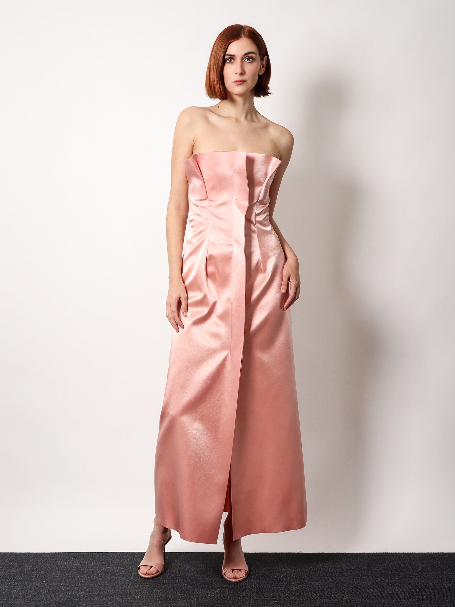 Satin long dress with bustier