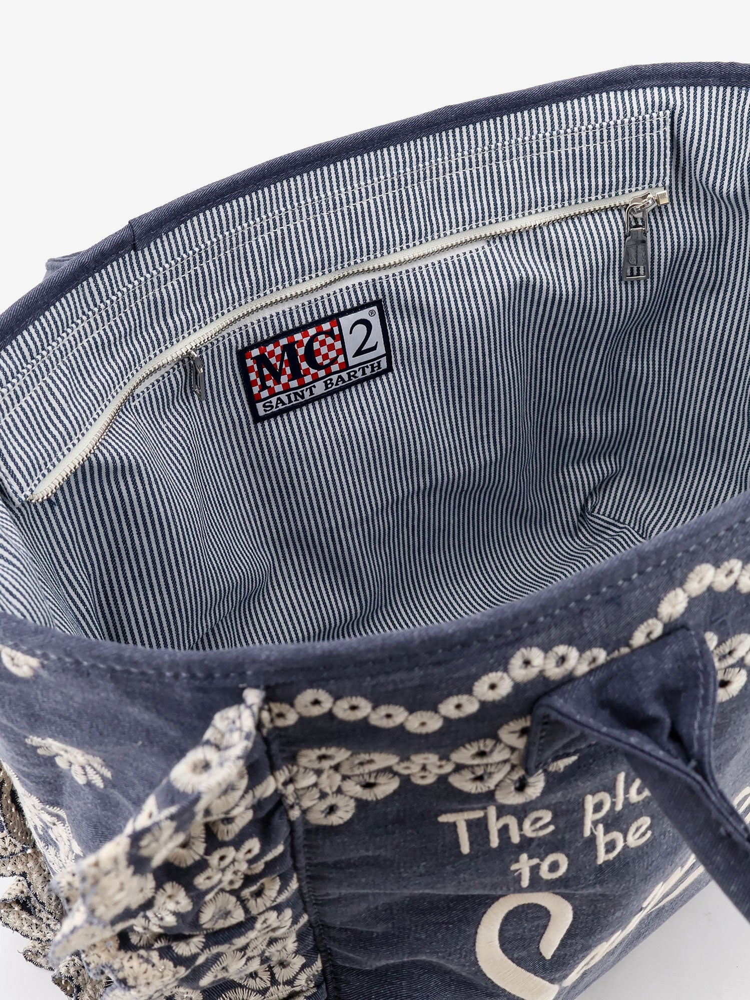 Vanity Volant canvas handbag with Sangallo embroidery
