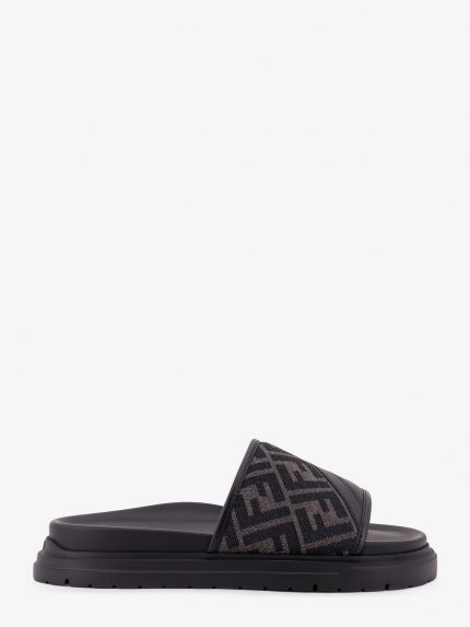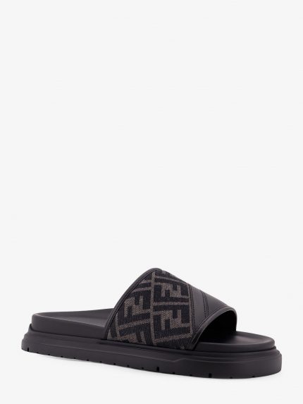Low leather sandals with FF jacquard insert