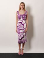 Silk midi pencil dress with Maiolica print