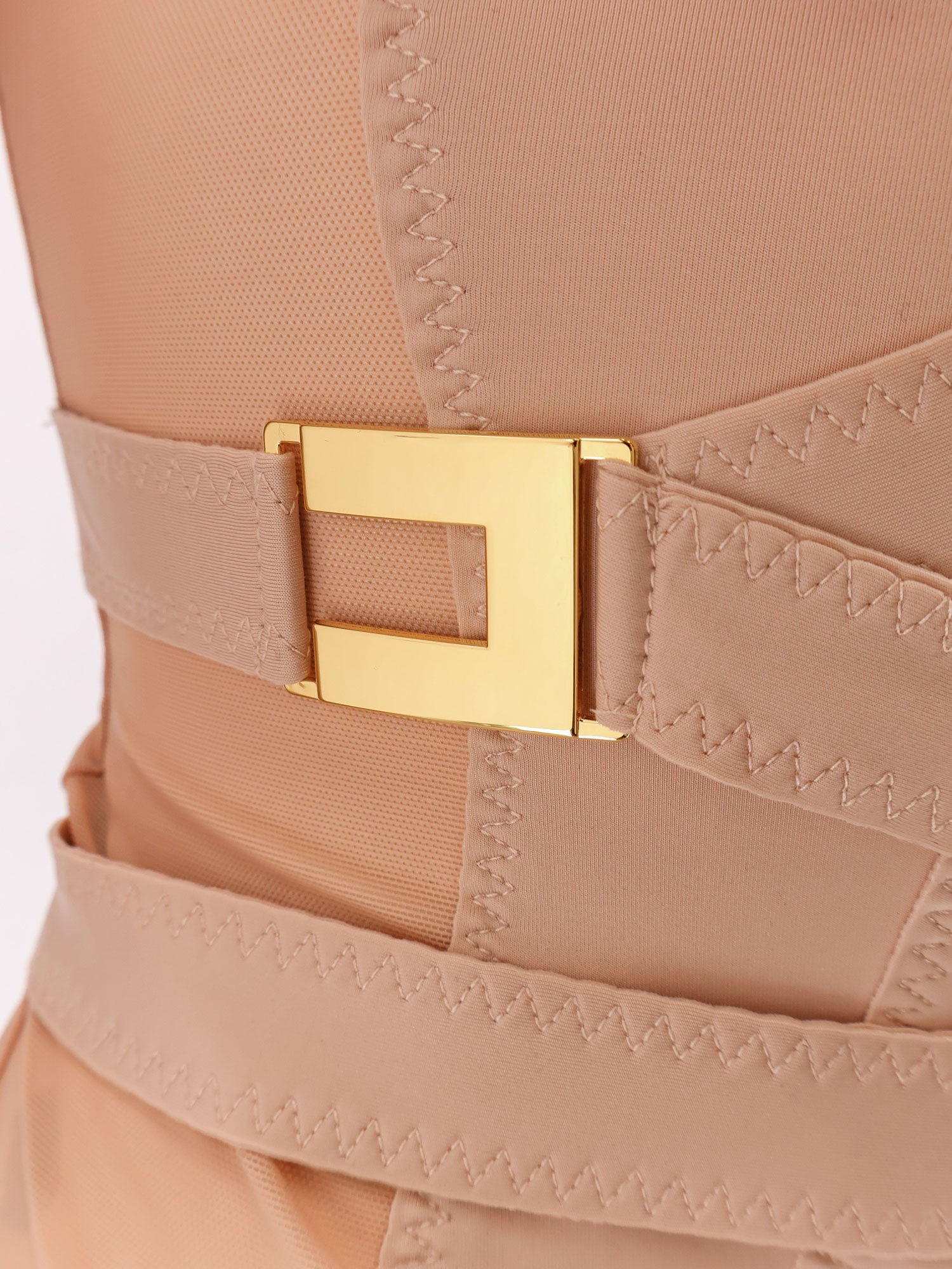 Elasticized straps with gold metal details