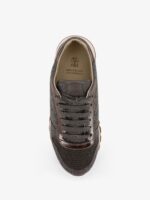 Low-top wool flannel sneakers with leather profiles